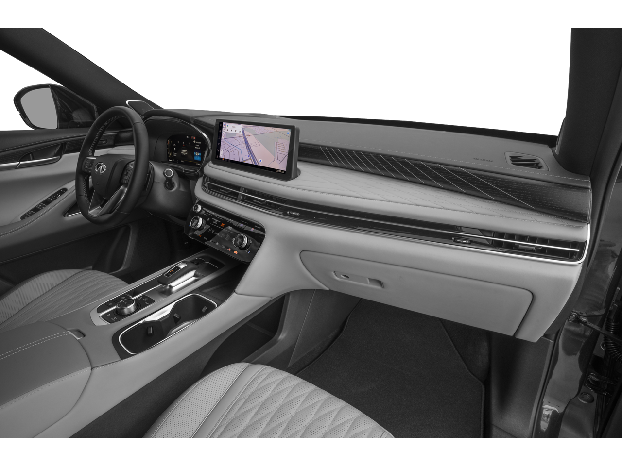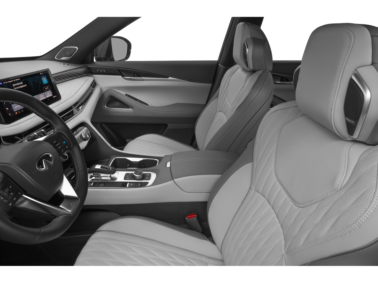 - Radio: Klipsch Reference Premiere Audio System -inc: 20 speakers w/individual audio, INFINITI InTouch 12.3" interactive display, Google built-in w/navigation: Google Assistant, Playstore, maps and data, SiriusXM satellite radio, wireless Apple CarPlay, wireless Android Auto, advanced voice recognition (one shot VDE, Natural Language Understanding (NLU)), INFINITI InTouch services and 5G Wi-Fi hotspot, Active Noise Cancellation (ANC) and 2 data capable type-C USB ports in front row