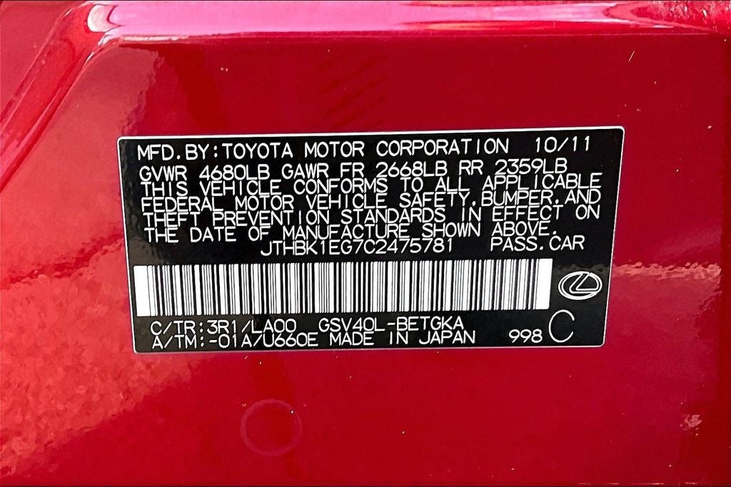 - Vehicle Name: Lexus ES 350