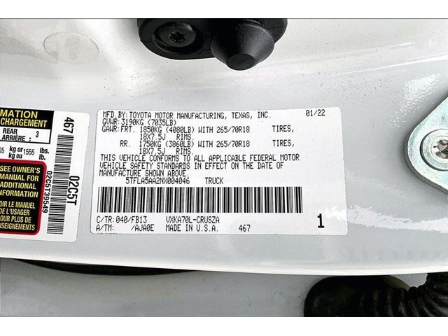 - Front Tire Size: P265/70TR18